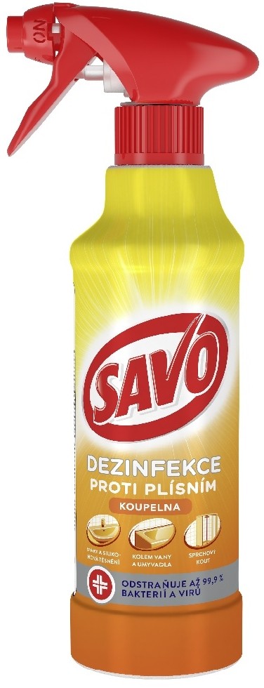 Nastříkejte SAVO proti plísni rovnoměrně ze vzdálenosti 10-15 cm a vyhněte se přílišnému navlhčení povrchu. Opusťte místnost a nechte působit 15-20 minut. Poté opláchněte ošetřené místo vodou nebo přípravek nechte zaschnout. Plíseň před postřikem neodstraňujte, aby nedošlo k rozptýlení nebezpečných výtrusů. Při silném napadení postup v případě potřeby zopakujte poté, co přípravek opláchnete, nebo po jeho zaschnutí. Přípravek nejprve vyzkoušejte na malé ploše, aby byla zřejmá reakce povrchu. Používejte pouze v dobře větraných prostorách. Pokud dojde k jakémukoli podráždění, přestaňte ihned s používáním, opusťte místnost, a nechte přípravek zaschnout.