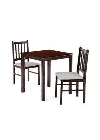 Jídelní set obsahuje stůl a 2 židle s polstrovanými sedáky.