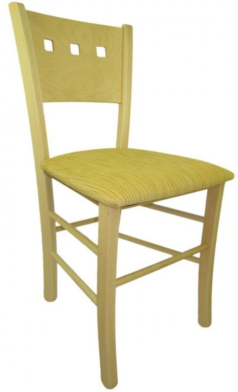 - Masivni židle s dřevěným opěrákem a čalouněným sedákem.