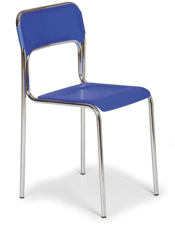 - Chromovaná židle s plastovým sedákem a opěrákem lehké konstrukce.