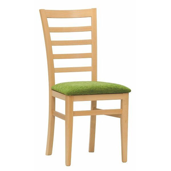 Jídelní židle s možností zakázkové úpravy odstínu dřeva a potahu.