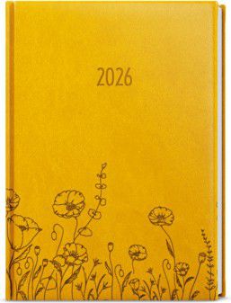 Denní diář v okrové barvě je vyrobený z jemné hladké vivelly s efektní ražbou s motivem Květin. Trendy a praktický doplněk, diář má velký prostor pro poznámky a plánování.
