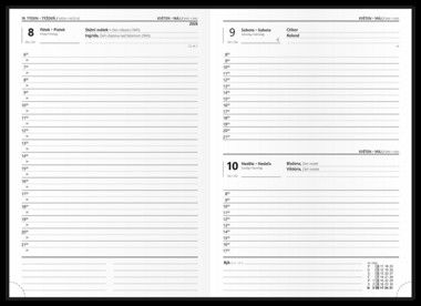 Denní diář formátu A5 vyrobený ze strukturovaného materiálu v oblíbených barvách a s gumičkou. Oblíbená grafika vnitřního bloku Vám pomůže účelně plánovat Vaše dny.