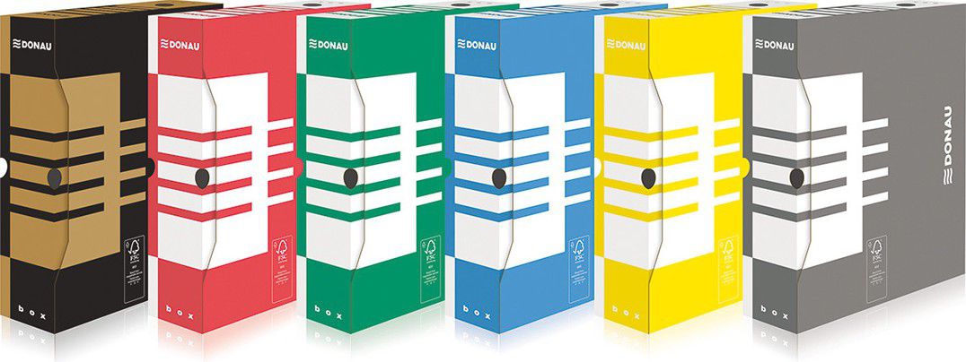 Standardní box pro uložení pákového nebo kroužkového pořadače. Lze skladovat rozloženě, snadné sestavení. Stabilní na krátké i delší straně. Pro snadnou manipulaci jsou k dispozici 2 otvory pro vyjmutí obsahu z boxu a 2 pro pohodlné vyjmutí boxu z úložné krabice. Možnost popisu na 5 plochách.