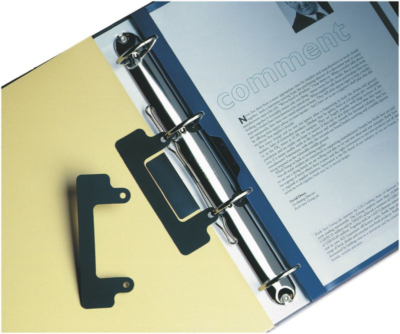 Samolepící černý závěsný díl pro archivaci dokumentů.