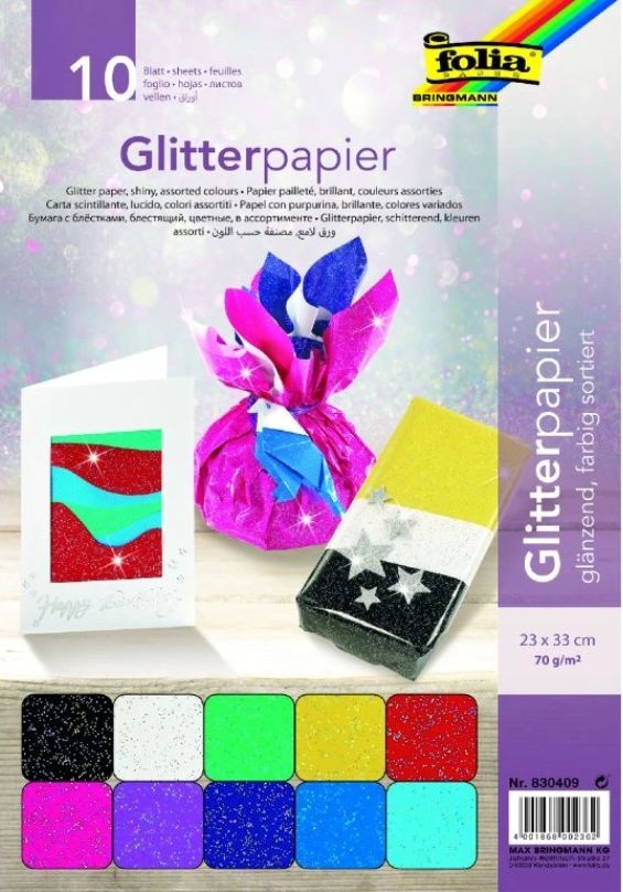Barevný papír se třpytkami, 22x33cm, 70g/m2, 10ks