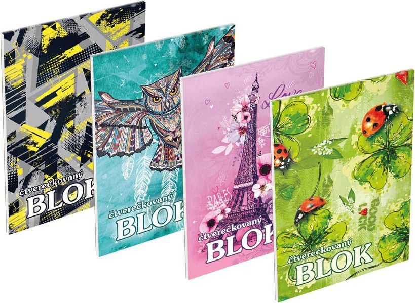 Trhací poznámkový blok A5 čtvereček. Potřebujete si zaznamenat důležitou informaci na kus papíru? Máme pro Vás širokou škálu poznámkových bloků, trhacích bloků, záznamových knih, a to dokonce v různých velikostech. Formát: A5 Gramáž: 60g Počet listů: 50 listů Provedení: abstraktní, sova, Eiffelova věž, berušky/čtyřlístky Dodáváme v mixu po 4 ks dle skladové zásoby. Uvedená cena je za 1 ks.