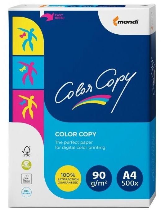 Color Copy je speciální papír pro digitální barevný tisk. Díky Color Copy můžete sami vytvořit velmi profesionální prezentaci pro náročné grafiky, designéry a reklamní agentury. Ostré tiskové výsledky, brilantní reprodukce barev díky speciální povrchové úpravě. Papír je velmi příjemný na dotek. Prvotřídní formování archů k optimální přilnavosti toneru. Dobrá průchodnost strojem, vhodné pro každý stroj. Šetrný ke strojům . Odolný vůči vysokým teplotám, není toxický a byl vyroben v souladu s ekologickou normou ISO 9706. Znovuuzavíratelné transparentní balení. Formát A4.
