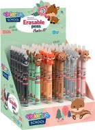 Školní gumovatelná pera s barevným tělem a roztomilými motivy zvířátek. Pohodlný pogumovaný grip a kvalitní modrá náplň. Ideální pro každého školáka! Balení: 36 ks.