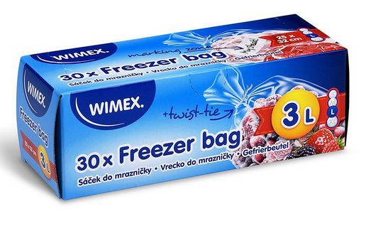 - Sáčky do mrazničky s uzávěrem, objem 3 l, rozměry 25 x 32 cm; dodávané v papírovém boxu po 30 ks.