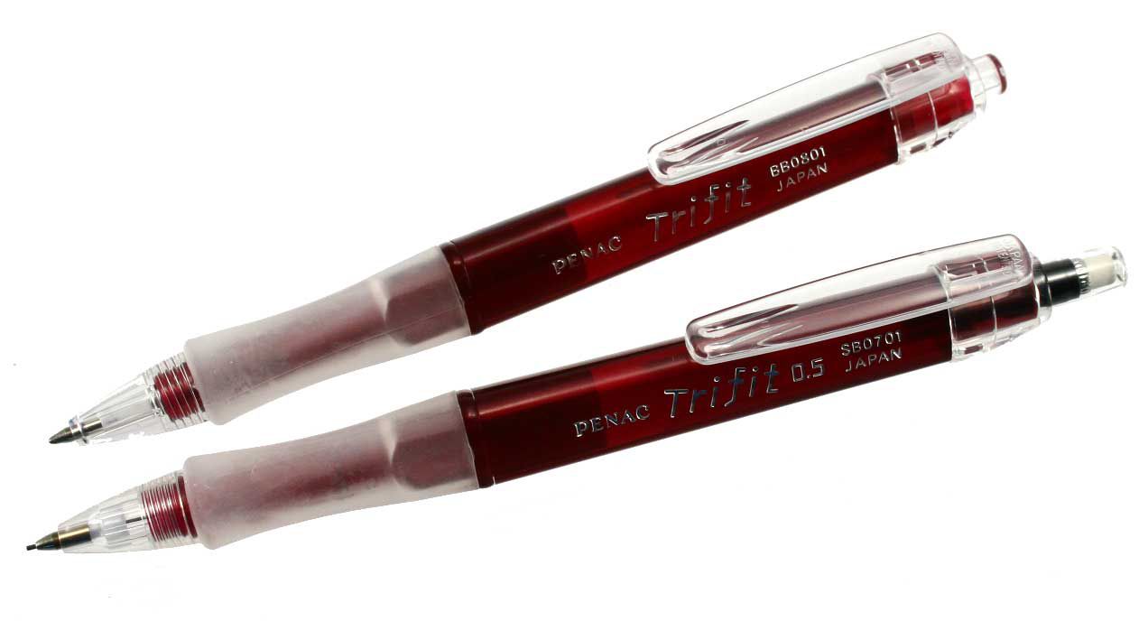 Moderní celotrojboké kuličkové pero, trojboký gumový úchop, slabá čára. Automatická tužka s kovovu špičkou. Dodává se v dárkové krabičce.