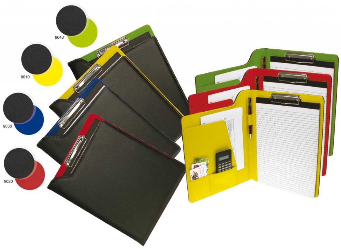 - Spisové desky formátu A4 v imitaci kůže s kovovým klipem na blok.