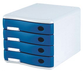 Barvy zásuvek: černá, modrá, tmavě šedá.