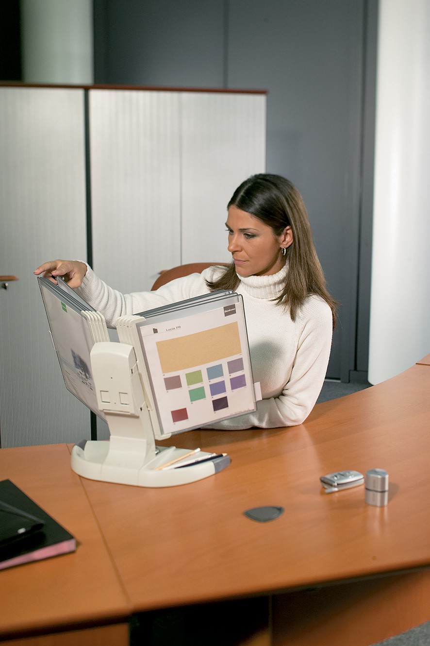 Elegantní plastový pultový stojan Design s 10 kapsami A4. Stojan je vyroben z odolného ABS plastu. Je vhodný pro umístění do kanceláří, na recepce, do vstupních hal, čekáren apod. Díky multifunkčnímu podstavci je velmi stabilní a obsahuje místo na uložení kancelářských doplňků. Jednoduché vložení a vyjmutí kapes pomocí úchytů a integrované zarážky pro optimální rozevření kapes. Kapsy Design s plastovými úchyty jsou vyrobeny z ekologicky šetrného polypropylenu. Barevný rámeček je uvnitř zpevněn kovovým drátem, který zajisťuje stálý tvar a pružnost lemu. V kompletu jsou plastové indexové záložky (rozměr: 5 cm), 5 ks. Lze neomezeně rozšiřovat jeho kapacitu přikoupením plastového dílu pro rozšíření držáku Design. Barva rámečku: šedá.