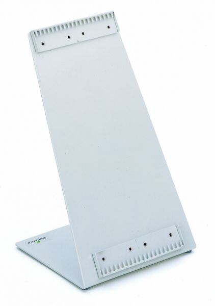 Stolní držák pro 20 tabulí 5607 formátu A4. Držák je ve tvaru „L“, z ocelového plechu, potažený vrstvou plastu odolného proti poškrábání. Kapacita: 20 tabulí A4, které je třeba dokoupit.