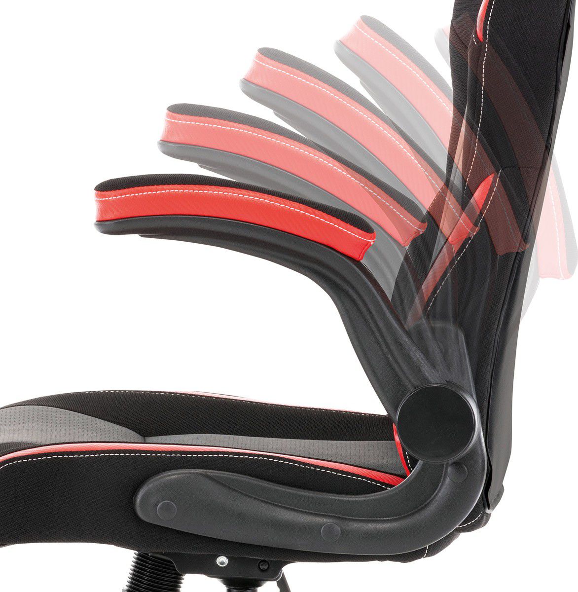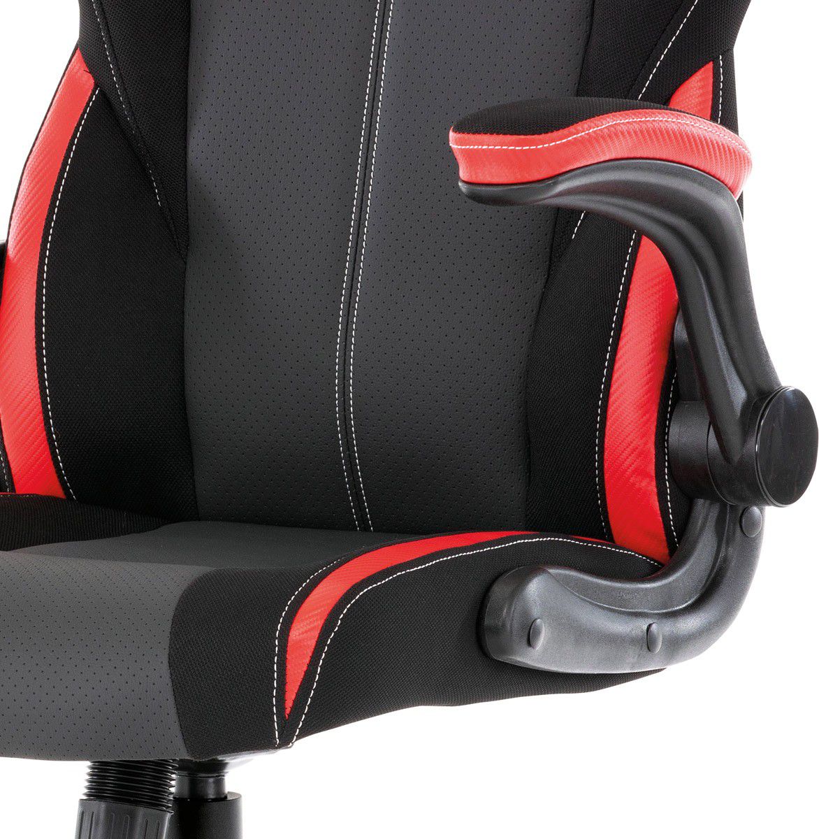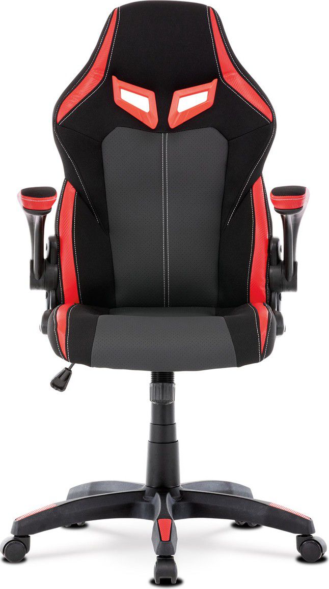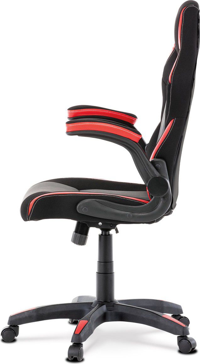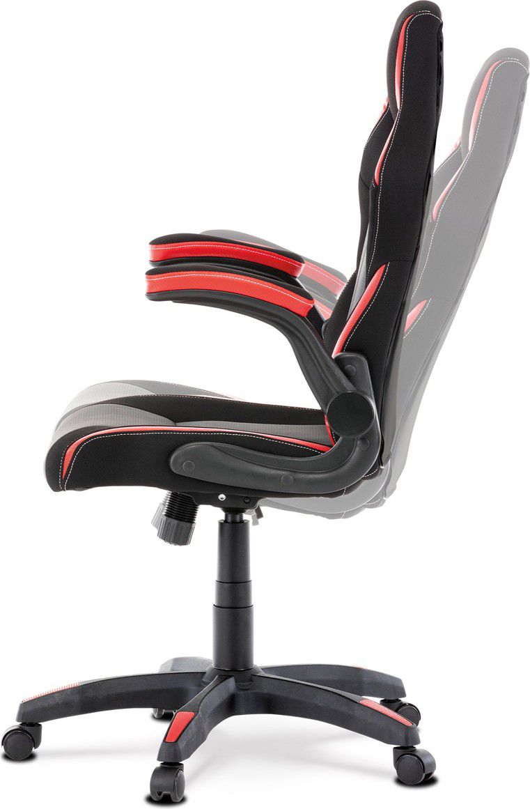 Herní křeslo, potah červená, černá ekokůže a černá látka, houpací mechanismus