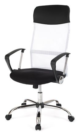 kancelářská židle PU/látka MESH černá, plyn.píst, houpací mechanismus, chromovaný kříž.