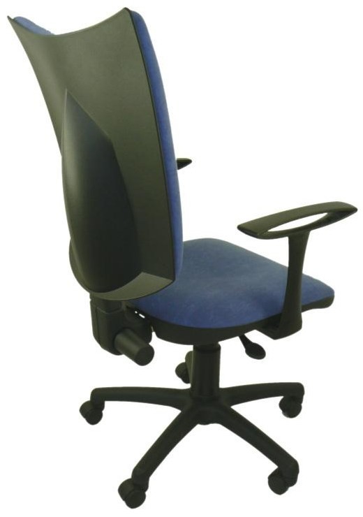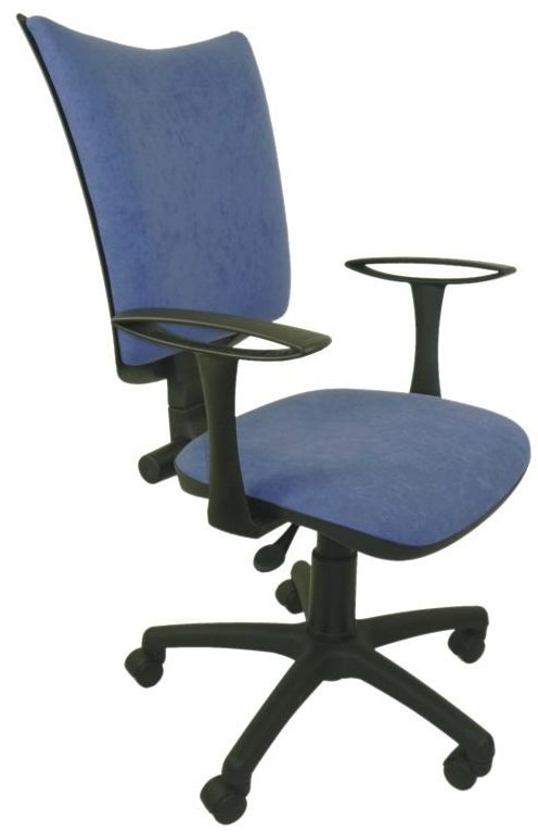Kancelářká pracovní židle čalouněná s vysokým opěrákem. židle je vybavena černým plastovým křížem. Potahové látky dle nabídky. Základní provedení je bez područek.