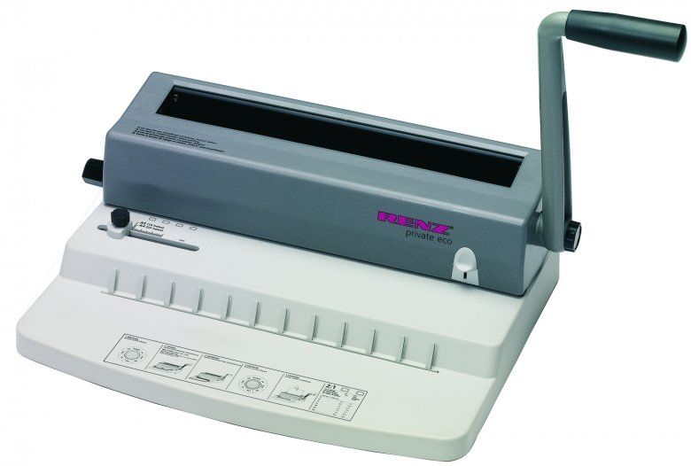 - Elegantní vazbu do kovových hřbetů s roztečí 2/1" (6,4 mm – 15,9 mm) vytvoří mechanický vázací stroj RENZ.