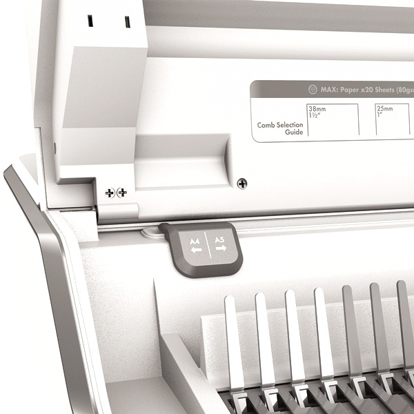 - Kapacita vazby až 300 listů, max velikost hřbetu 38 mm.