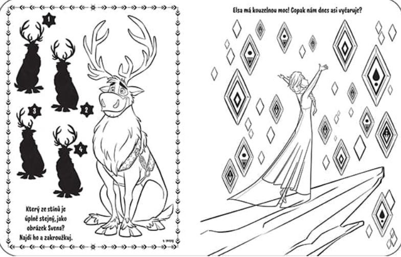 - Omalovánky obsahují 24 stran plných omalovánek a aktivit a více než 100 metalických a papírových samolepek k dolepení a ozdobení.