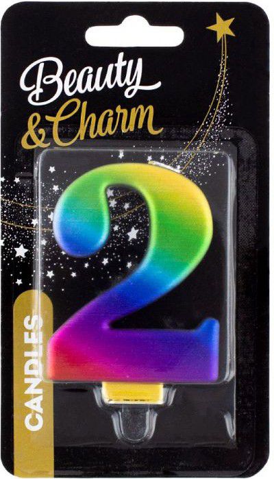 Dortová svíčka číslice 2 metalická, duhová 8cm
