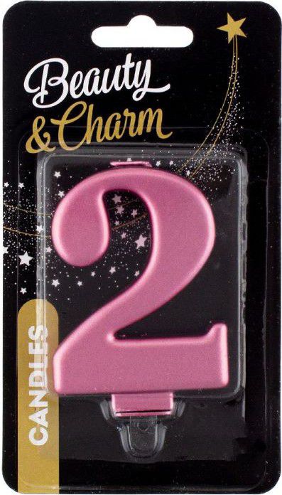 Dortová svíčka číslice 2 metalická, růžová 8cm