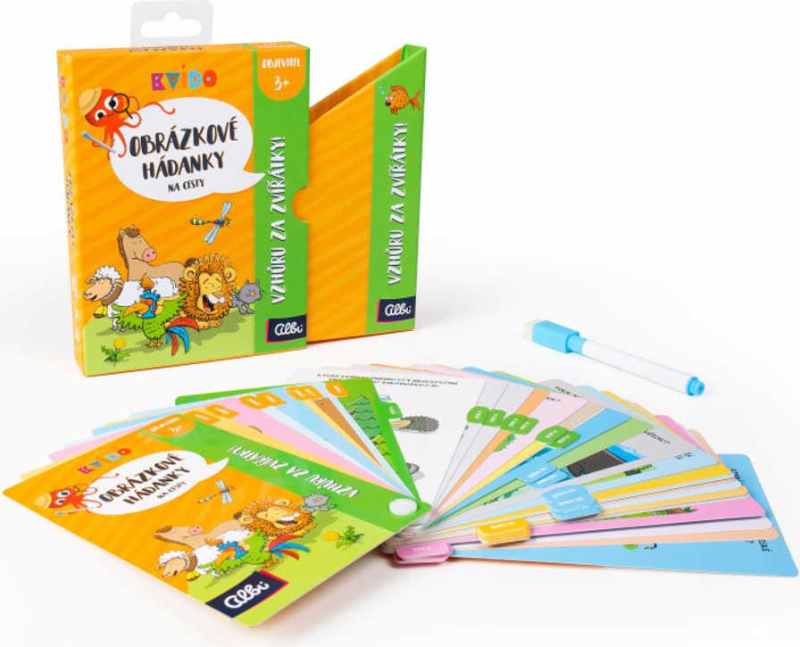Obrázkové hádanky na cesty od Kvída jsou originální ilustrované hádanky od českých autorů, které rozvíjí znalosti dětí v různých oblastech. Na 40 oboustranných kartičkách na děti čekají nápadité a zábavné