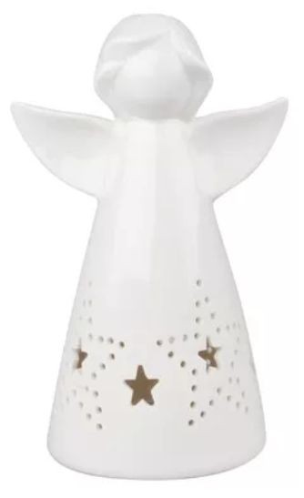 Anděl porcelánový s hvězdou s LED 16 cm