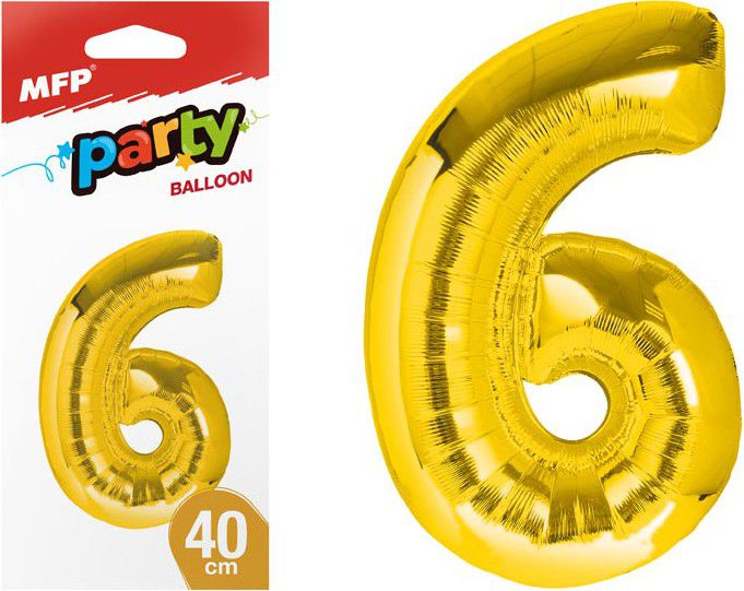 - Nafukovací fóliový balónek ve tvaru čísla 6 ve zlaté barvě. Hitem posledních let jsou oblíbené balónky ve tvaru číslic, které oživí celou narozeninovou oslavu a zajisté potěší oslavence. Narozeninová oslava může začít! Balónek je vyroben ze stříbrné fólie. Na horní straně balónku jsou očka na přivázání. Výška balónku: 40 cm
