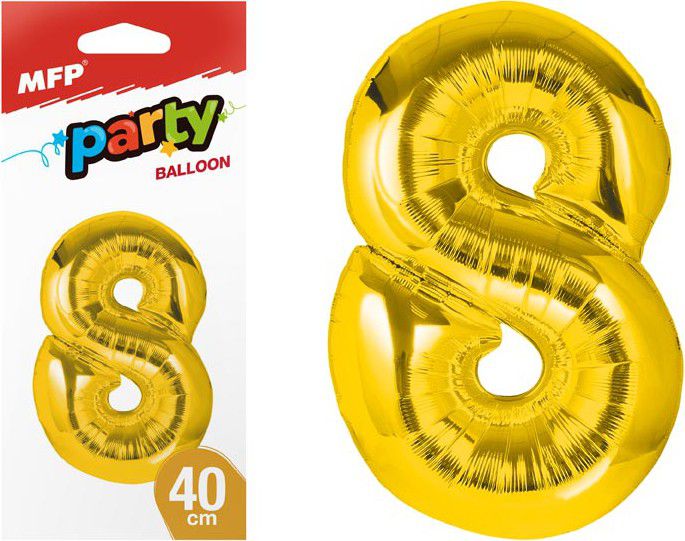 - Nafukovací fóliový balónek ve tvaru čísla 8 ve zlaté barvě. Hitem posledních let jsou oblíbené balónky ve tvaru číslic, které oživí celou narozeninovou oslavu a zajisté potěší oslavence. Narozeninová oslava může začít! Balónek je vyroben ze stříbrné fólie. Na horní straně balónku jsou očka na přivázání. Výška balónku: 40 cm