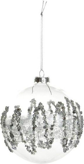 - Čirá, skleněná baňka na vánoční stromeček se stříbrným dekorem.