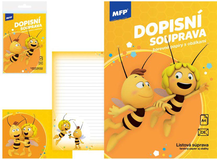 - Dopisní souprava s obrázkem ze známé pohádky Včelka Mája. Včelka mája je zde i s Vilíkem.