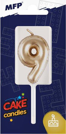Dortová svíčka balonek ve tvaru čísla 9 ve zlaté barvě. Pořiďte oslavenci dortové svíčky, které dozdobí už tak dokonalý dort a splní oslavenci jeho tajné přání! Barva: zlatá Rozměr: 54 x 37 mm VAROVÁNÍ: Slouží jako dekorace, není hračka, není určeno ke konzumaci! Při manipulaci s otevřeným ohněm dbejte zvýšené opatrnosti, nevystavujte průvanu. Svíčku postavte svisle na nehořlavý podklad. Nenechávejte hořet bez dohledu. Nutná stálá přítomnost dospělé osoby! Dodáváme v plastovém obalu se závěsem. Uvedená cena je za 1 ks.