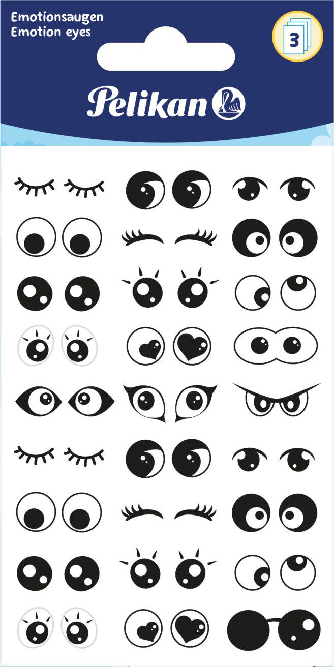 - 3 archy samolepek se samolepícími emocionálními oky v různých provedeních.