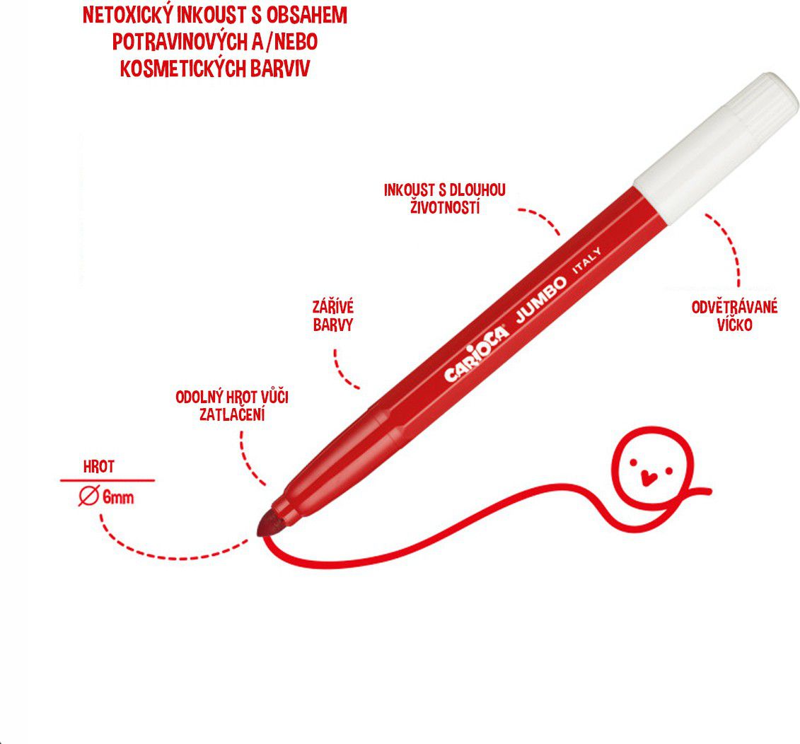 Perfektní společník pro děti od 24 měsíců, kteří objevují svět kreslení. Bezpečný zaoblený hrot je odolný proti vtlačení a odolá i tlaku dětských ručiček. Široké tělo umožňuje snadnou manipulaci a pohodlné vybarvování i větších ploch. Netoxický inkoust snadno odstraníte z pokožky a textilu vodou, takže se tvoření obejde bez starostí. Pro děti mladší 3 let doporučujeme dohled dospělých.