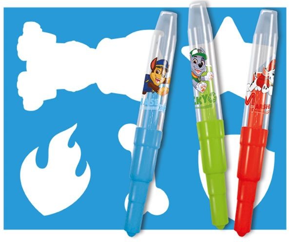 - Balení obsahuje 10 barevných foukacích fixů s potiskem v oblíbených motivech Tlapkové patroly a 1 šablonku.