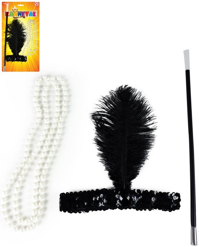 Informace o zboží KARNEVAL Charleston čelenka s peřím set s korálemi a cigaretovou špičkou