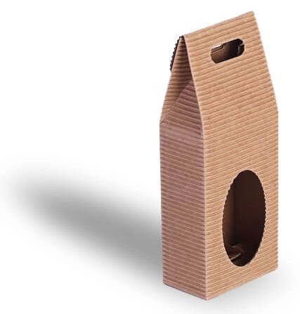- Jednodílná dárková krabička s okénkem z dvouvrstvé vlnité lepenky a odnosným ouškem.