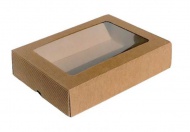- Víko je z dvouvrstvé vlnité lepenky s vlnou na vnější stranu, opatřené elipsovitým okénkem s folií.