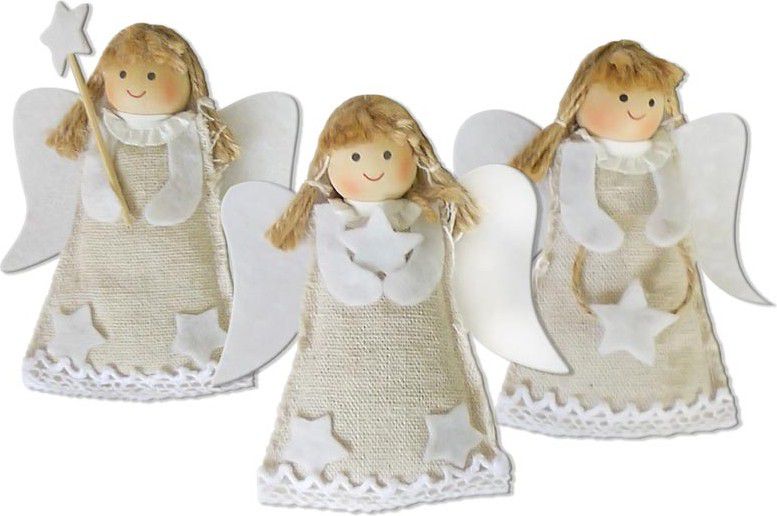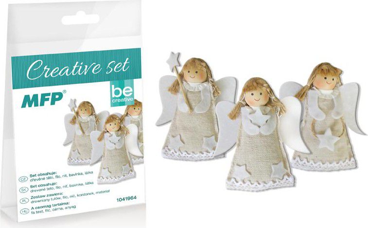 - BALENÍ OBSAHUJE: 3 x filc ve tvaru andílků, stuhu, plstěnou výplň, nit, návod.