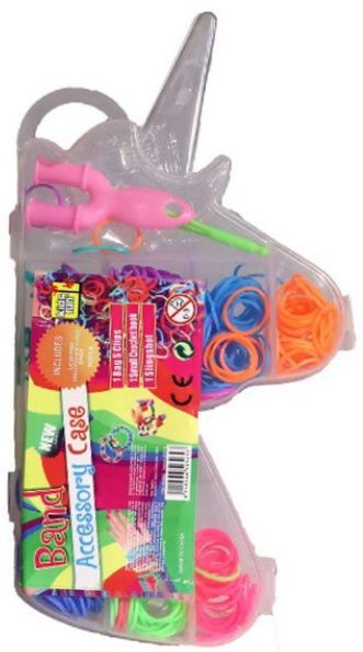 - Sada obsahuje 380 kusů gumiček - 10 barev, sáček s háčky na spojení náramků, háček k pletení a "prak" k pletení.