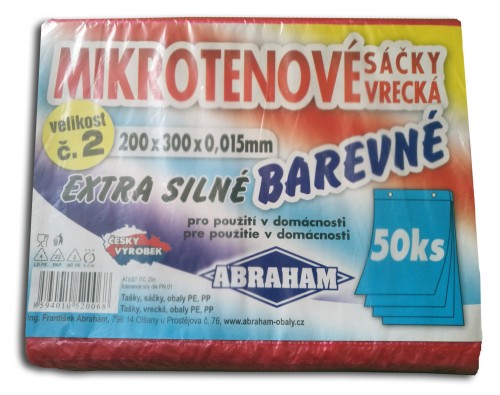 Informace o zboží Mikrotenové sáčky 200x300 x 0,015 mm, barevné,50ks