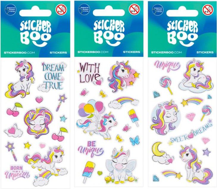 - Nálepky Jednorožec na bílém podkladu, 3 druhy.