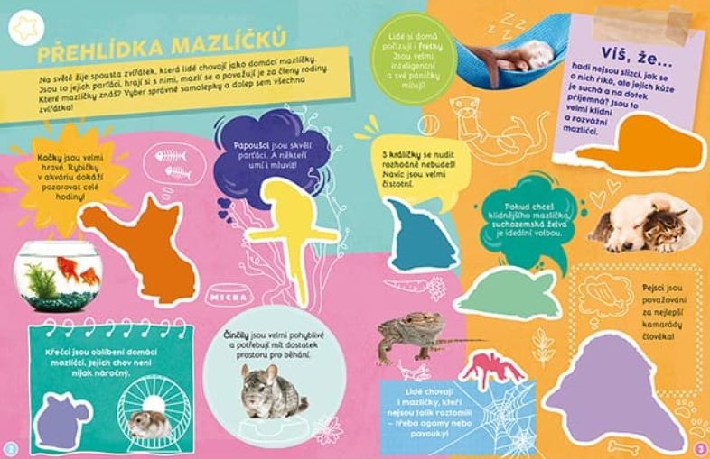 - Naučná samolepková knížka obsahuje 16 tematických stran s fotografiemi a více než 100 samolepek pro dolepení.