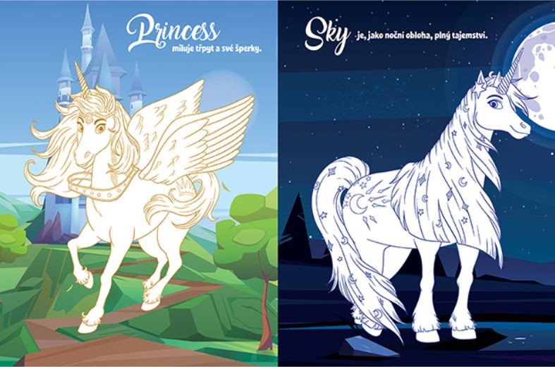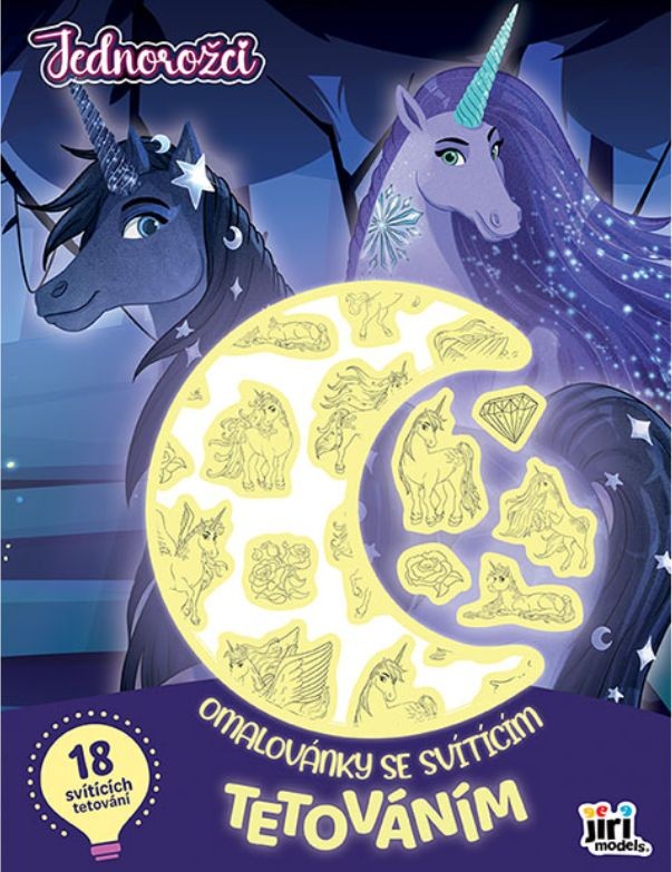 - Omalovánky obsahují 16 barevných stran s obrázky k vybarvení a list originálních tetovaček, které ve tmě svítí.