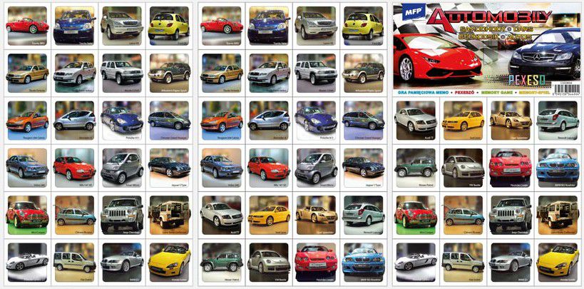 PEXESO je populární dětská stolní hra, která nikdy neomrzí a zapojit se můžou i dospělí. Pexeso - Automobily. Vhodné pro děti, které jsou milovníky aut. Věděli jste, že slovo PEXESO vzniklo souslovím slov PEKELNĚ SE SOUSTŘEĎ? Výborná učební pomůcka pro děti a rodiče. Naučte své děti poznávat různé značky automobilů a procvičujte jejich paměť. Tato hra je zabaví na dlouhé hodiny. Pexeso se skládá ze tří A4, na kterých najdete 64 kartiček obrázků s automobily a návod ke hře - kartičky jsou s názvy značek.