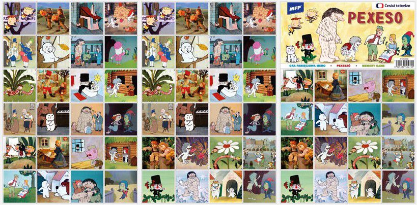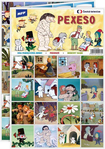 PEXESO je populární dětská stolní hra, která nikdy neomrzí a zapojit se můžou i dospělí. Pexeso - Večerníčky z ČT - nás zavede zpět do pohádkového světa ČT. V pexesu se můžete těšit na příběhy z pohádek O človíčkovi, O Sazinkovi, Chaloupka na vršku, Sněžný muž Hugo, Jak Bzuk a Ťuk putovali za sluníčkem, Vodník Čepeček, O Kubovi a Stázině a Příhody kocourka Damiána.