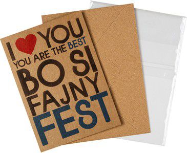 Láska se dá vyjádřit různými způsoby. Originální přáníčko pro ty, které chcete potěšit a pobavit. Grafika je ručně kreslená a psaná, proto mají BeBechy neomezené možnosti originálních motivů a textů. Přání je vyrobeno z recyklovaných materiálů. Kraft je odolný a uchovává si přirozenou barvu a texturu, která nám je velmi sympatická. Zároveň výroba tohoto papíru není nijak složitá, a tak minimálně zatěžuje životní prostředí. V ceně balení je recyklovatelná obálka a průsvitná fólie.