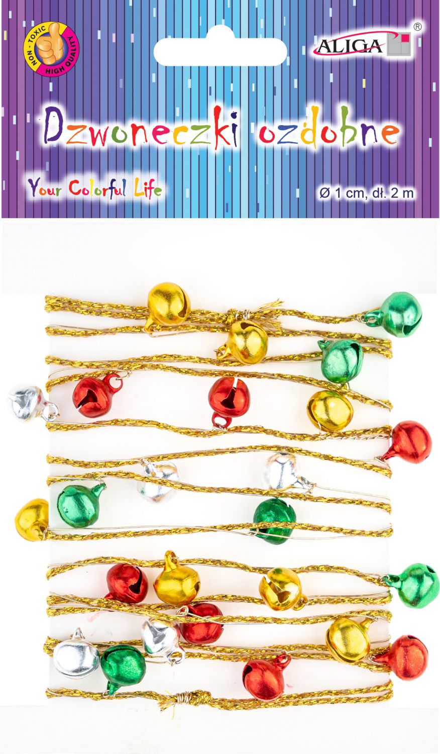 - Rolničky MIX barev na zlatém provázku